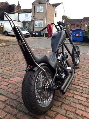 An old school style stainless backrest with Catholic style cross was the order of the day for this great Harley.