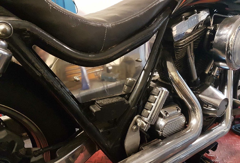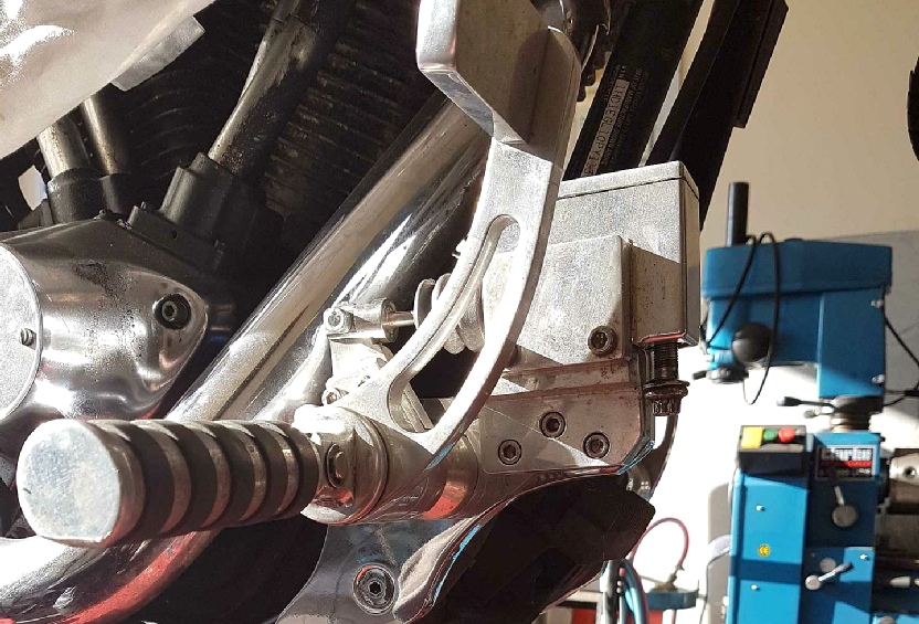 A bit more of the shiny stuff for a FXR Harley meant a set of aluminium footrest brackets to fit RST forward controls and stainless steel side panels.